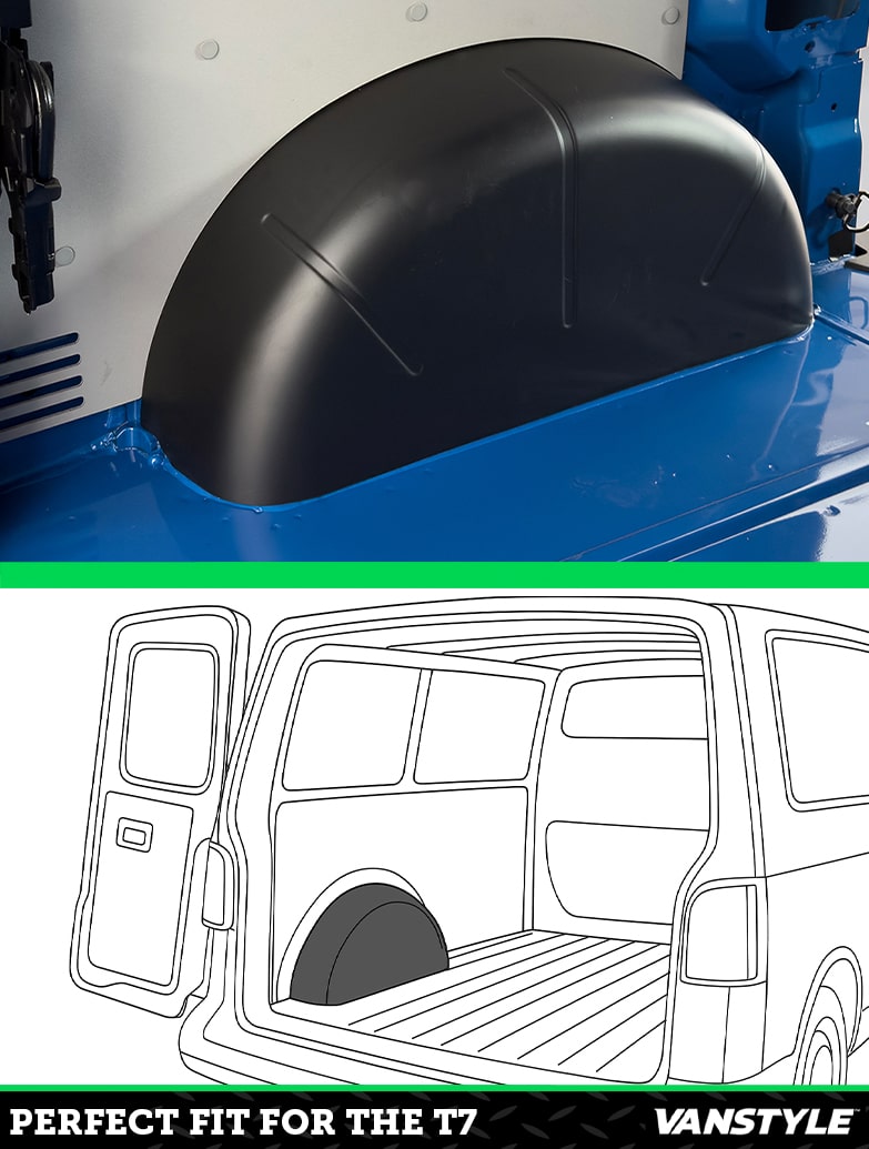 These covers protect the rear inner arches on your VW Transporter T7. They stop marks and scuffs in a high-wear area.